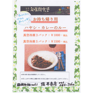 - 勧業館食堂のハヤシ・カレーのルー販売(真空冷凍パック)